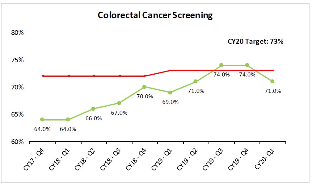 Rush reports quality data on many clinical metrics to the Centers for Medicare and Medicaid Services (CMS) – one of them being Colorectal Cancer Screening. We do this for reimbursement from CMS as well as for transparent quality reporting to the public.