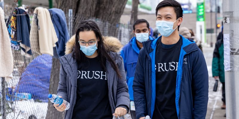 When the COVID-19 pandemic response began in Chicago in March 2020, Rush health care providers who volunteered their time at the Franciscan House of Mary and Joseph and Rush University students met daily to mitigate the spread at Franciscan House, a vital emergency shelter on the West Side. Word quickly spread to other shelter providers about the health services being offered there, and soon other shelters were requesting the same. Lawndale Christian Health Center, Heartland Alliance Health, Cook County Health and the University of Illinois Chicago joined as well to consolidate our efforts. This group became known as the Chicago Homelessness and Health Response Group for Equity (CHHRGE), and the lead coordinating organizations were Lawndale Christian Health Center and Heartland Alliance Health. It was this collaborative work that inspired the need for the Center to Transform Health and Housing at Rush University Medical Center.