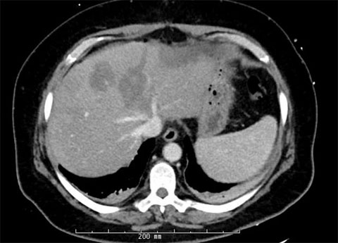 We identified 12 total lesions on the patient’s liver; five of these were in segment 2, one was in segment 1, four were in segment 3 and two were in segment 4A.
