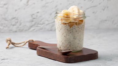 Don't have a lot of time to make a healthy breakfast before work or school? Prepare our creamy, hearty banana-peanut butter overnight oats before you go to bed. Then, in the morning, you can just grab a spoon and dig in! Recipe courtesy of the Rush Cancer Supportive Care team.