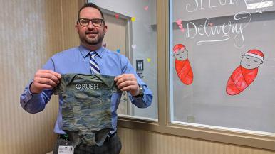 Hart, a clinical engineering site manager who has worked at Rush Copley Medical Center since November, bought RUSH logo onesies from the hospital’s gift shop for babies born on his birthday. A card with each one read, “From my birthday to yours.”