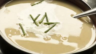 This lighter take on Julia Child's classic French potato and leek soup is the perfect comfort food. Low in calories and fat, it only tastes decadent. Enjoy it for lunch or dinner on a blustery day, or serve as a starter at your next gathering. Bon appétit!