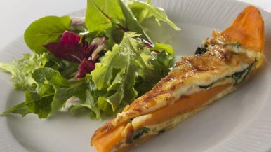 Nutrient-rich sweet potatoes form the crust for our spinach and mozzarella quiche, making it a great gluten-free option for breakfast, brunch or lunch.