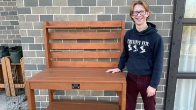 As Boy Scout Colin Irvine considered what project he wanted to undertake to earn his Eagle Scout rank, he came up with an idea that involved a hobby he enjoys: woodworking. He decided to build two benches for Waterford Place Cancer Resource Center, creating gardening work benches to benefit the garden club.