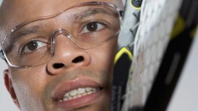 Get goggles with polycarbonate lenses, which are 20 times stronger than the type used in everyday glasses.