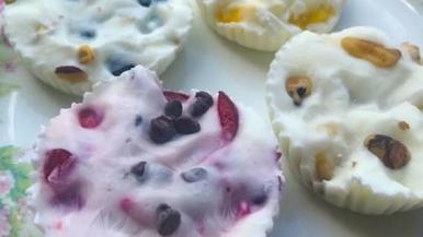 - Evenly distribute yogurt in muffin cups, approximately 3-4 tablespoons per cup.