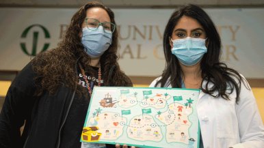 Behnoosh Shayegan, MD, director of pediatric anesthesiology, first got the idea for a tool like this while completing her anesthesiology fellowship. She witnessed what a difficult and stressful time this could be for children and dreamed of creating something fun and interactive that could help ease the anxiety of patients going through the surgical process. Shayegan teamed up with Miller and the two thought through every stage of a patients’ journey into surgery from the moment they walk through the doors to discharge. The treasure map has been a longtime vision of Shayegan’s. She drew the first iterations of the map by hand and then worked with Rush Marketing Communications to bring her sketch to life.