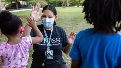 To help alleviate household stress, the team also connects families with resources for immediate needs like free, healthy food; paying utility bills; finding housing; enrolling in health insurance; connecting with a primary care doctor and more.