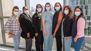 The members of the PACU’s Beacon Committee are pictured above. From left to right: Mallarie Domke, RN, CPAN; Michelle Smith, MSN, RN, CAPA; Katrina Blade, DNP, RN, CPPS, NE-BC, CPAN; Anna Bresnahan, RN; Camille Brownlee, MSN, RN, CNL; Robbin Neville, RN, CPAN, CAPA; and Maira Roman, MSN, RN. (Not pictured: Denina McCullum-Smith MSN, RN, CMSRN; Carmen Avila, RN, CPAN; and Heather Darnell, RN.)