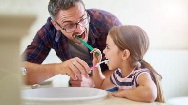 In addition to visiting the dentist every six months, be sure to brush and floss twice a day — and after meals — to keep your teeth and mouth healthy.