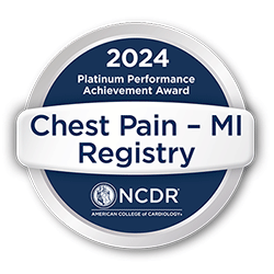To receive the Platinum Performance award, hospitals must demonstrate sustained achievement in the Chest Pain-MI Registry for two consecutive years and perform at the highest level for specific measures. Full participation in the registry engages hospitals in a robust process using data to drive quality improvements in adherence to guideline recommendations and overall quality of care provided to patients.