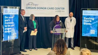 RUSH and Gift of Hope Organ & Tissue Donor Network announced they will establish Illinois’ first hospital-based donor care center — a world-class intensive care and surgical unit for deceased organ donors, staffed with leading clinicians and allied multidisciplinary services to optimize the impact of every organ donation and save more lives.