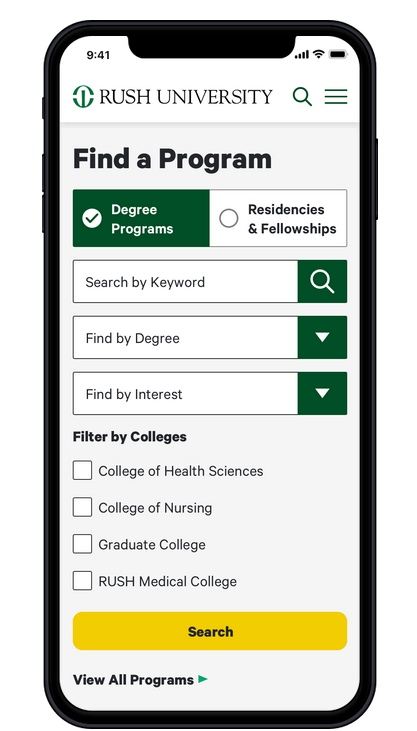 The RUSH University website now has an enhanced user experience. Program pages have been optimized to highlight content that reflects what prospective students want to see.