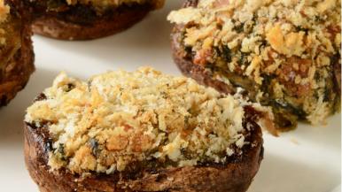 - Spoon the artichoke mixture evenly into the mushroom caps and sprinkle with the breadcrumb mixture.