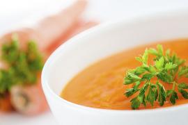 Fresh carrot and ginger are enhanced by a blend of Indian spices in this simple yet sublime vegetarian soup recipe