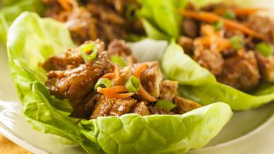 Serving Size: 2 lettuce wraps plus 1 ounce of sweet chili sauce and 1 ounce of hoisin-soy sauce