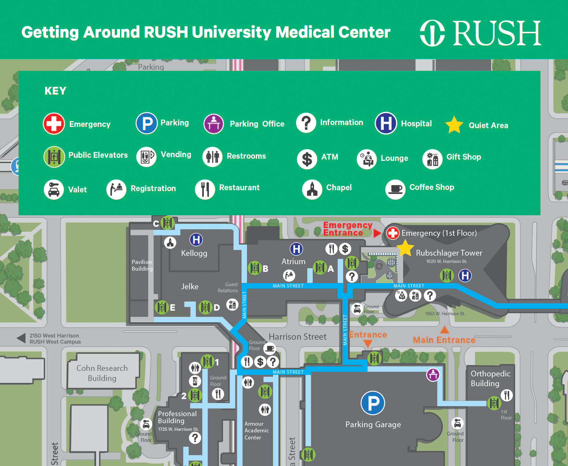 - Select your preferred location: Rush University Medical Center or Rush Oak Park Hospital..