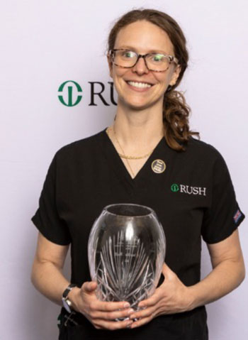 The Ellen Elpern Voice of the APRN Award is given annually to an Advanced Practice Registered Nurses (APRN) working at RUSH who exemplifies the characteristics of leadership, commitment and excellence in advanced practice nursing as demonstrated by former colleague Ellen Elpern MSN, APRN. This award celebrates the contributions that APRNs make toward continually improving patient care at RUSH.